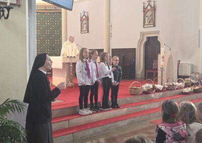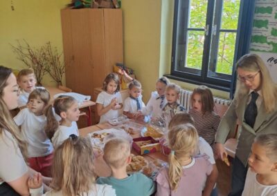 U petak, 17. 10. 2025., u matičnoj je školi obilježen Dan kruha i zahvalnosti za plodove zemlje, a ujedno i Dan kravate. Bio je to dan u kojem smo spojili zahvalnost za plodove zemlje i podsjetnik na važnost poštovanja, kulture i zajedništva. Od ranog jutra školom se širio miris pečenog kruha, peciva i kolača koje su učenici donijeli.  Bio je to poseban miris – miris doma, topline i ljubavi. Svi su razredi zajedno sa svojim učiteljima otišli na svetu misu u župnu crkvu sv. Nikole. Budući da traju listopadske pobožnosti, prije samog početka mise, učenica Mila Ranogajec (5. b) predmolila je deseticu krunice. U molitvi vjernika učenici 3. b razreda Magdalena Merkaš, Vilim Bajsić, Kristijan Petanjek, Jelena Mara Tušek i Petar Podoreški iskazali su zahvalnost za kruh naš svagdašnji. Svojim anđeoskim glasićima sestre Marta i Sara Pavlinić (2. a i 3. a.), te Marta i Franka Poslon (3. a i 1. a) upotpunile  su ovo misno slavlje. Recitacije na kraju svete mise upriličile su učenice Katja Brković i Marija Presečki. Obilježavanje Dana kruha i Dana kravate podsjetilo nas je na to koliko su zahvalnost, mir i zajedništvo važni u životu. Naučili smo da nije dovoljno samo jesti kruh, već ga i dijeliti s drugima – baš kao što nije dovoljno nositi kravatu, ako ne nosimo i poštovanje u srcu. Ovi dani neka nam budu podsjetnik da ne zaboravimo na zahvalnost prema Bogu i prema ljudima.