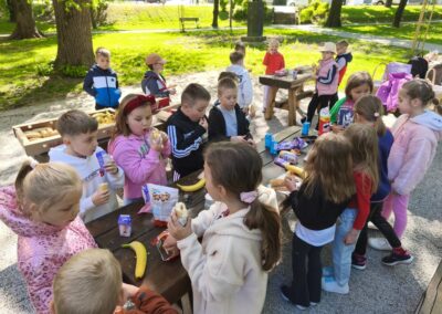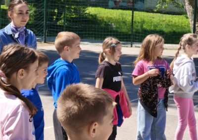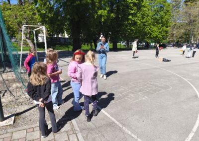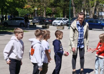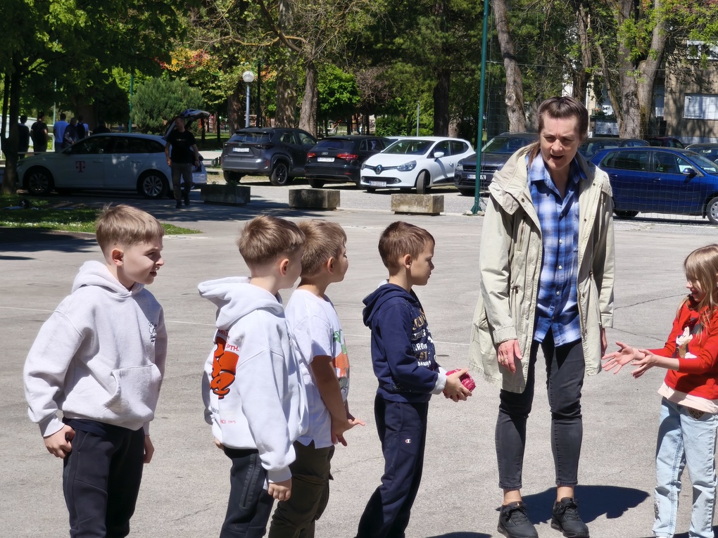 Nakon zajedničkog druženja uz košarice s hranom i slobodne igre, aktivnosti su nastavljene igrom „Autobus smijeha“, kroz koju su učenici vježbali koncentraciju, slušanje i brzu reakciju. Kroz zamišljenu vožnju i kretanje u „zavojima“, uz mnogo smijeha, stvorena je opuštena i poticajna atmosfera te su se učenici simbolično “provozali” u svijet priče.