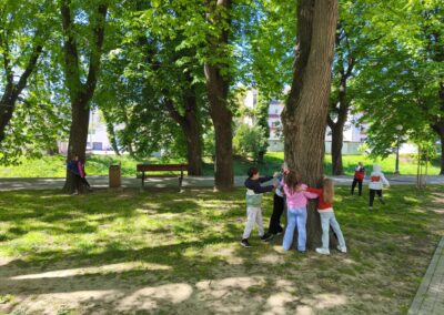 Uslijedilo je čitanje slikovnice Medo koji voli grliti autora Nicholasa Oldlanda, koja na djeci blizak i razumljiv način progovara o važnosti emocija, prijateljstva i poštivanja osobnih granica. Učenici su aktivno sudjelovali, promišljali i dijelili svoje dojmove. Posebno je naglašena važna poruka priče – zagrljaj donosi utjehu i dobro, ali prije zagrljaja potrebno je pitati i uvažiti odgovor druge osobe. Aktivnost je završena simboličnim grljenjem drveća u školskom parku.