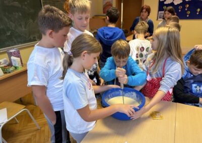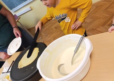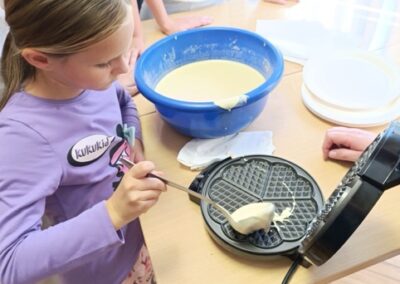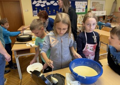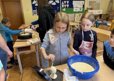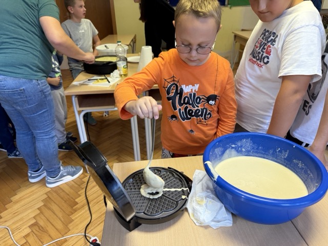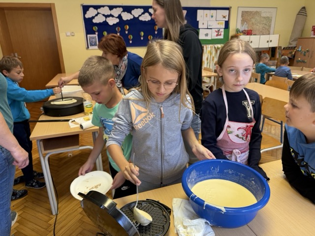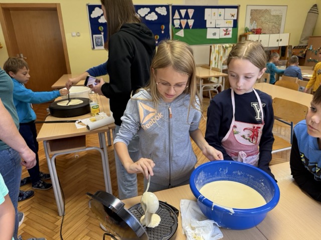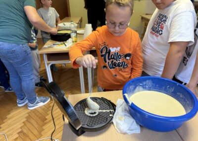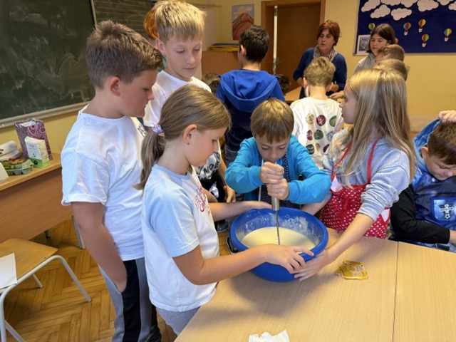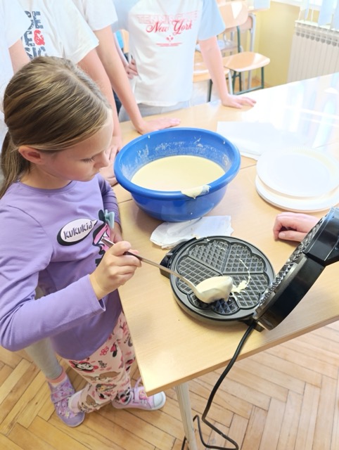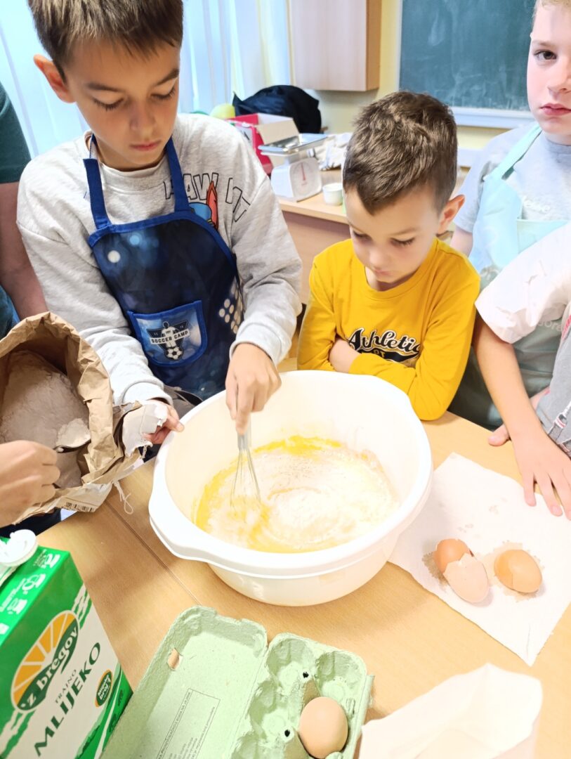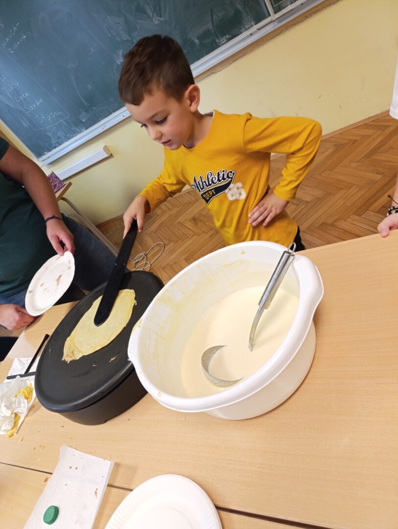 U četvrtak 16.10.2025. učenici razredne nastave u Područnoj školi Donja Šemnica odlučili su se zasladiti vaflima i palačinkama te su nakratko svoje knjige i bilježnice zamijenili posuđem, jajima, brašnom, šećerom, mlijekom i uljem. Uz malu pomoć učiteljica zamijesili su smjese za vafle i palačinke i ispekli ih kao pravi profesionalci. Moramo vam priznati, cijela je škola mirisala po palačinkama, a zasladili su se i stariji učenici. Tako smo veselo i slatko obogatili obilježavanje Dana zahvalnosti za plodove Zemlje i Dana kruha.