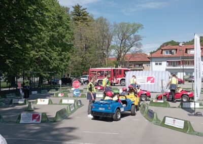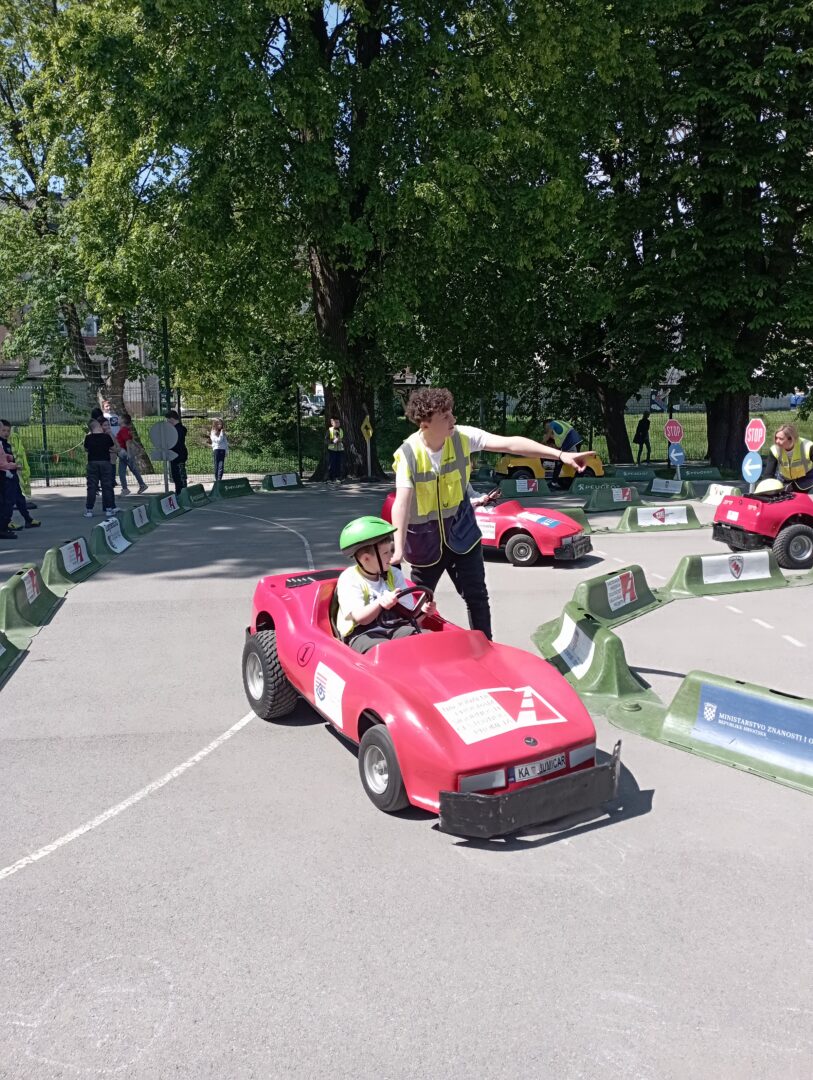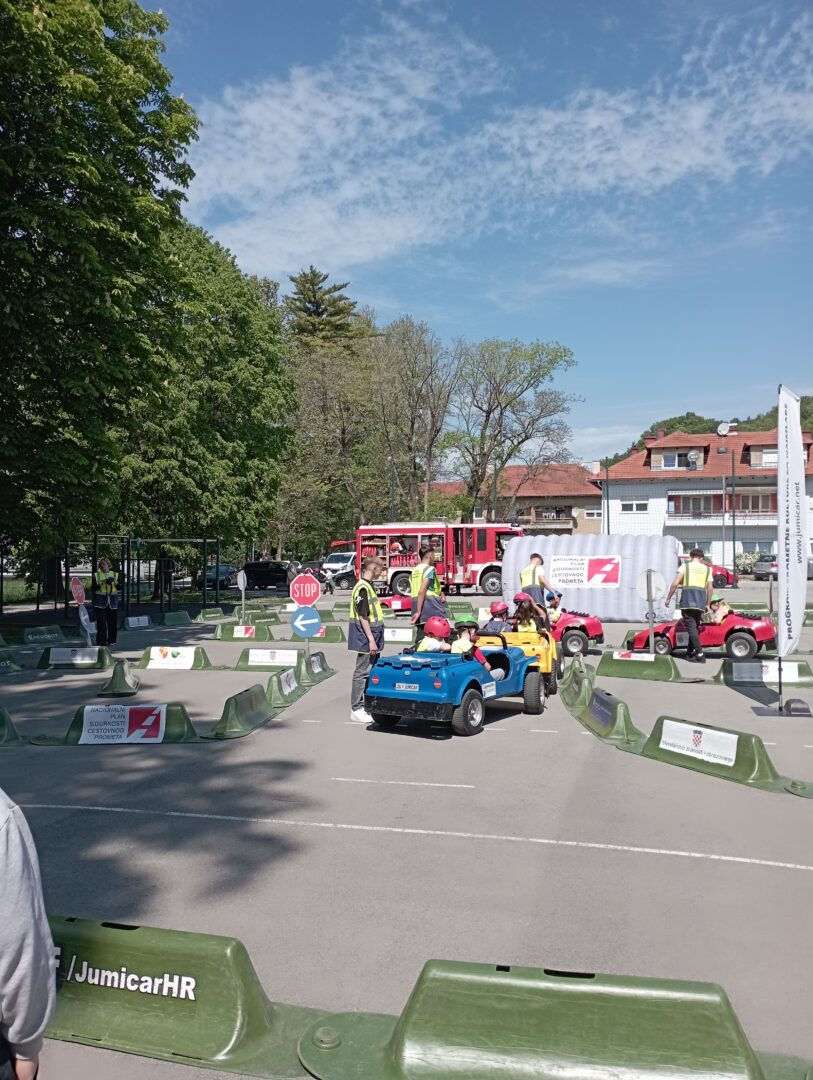 U ponedjeljak, 27.4.2026., u našoj školi na školskom igralištu je održan program prometne kulture za najmlađe, poznatiji kao Jumicar. Sudjelovali su učenici drugih razreda OŠ „Ljudevit Gaj“ Krapina, PŠ Donja Šemnica, PŠ Lepajci te učenici OŠ Augusta Cesarca. Edukacija je bila podijeljena na teorijski i praktični dio u sklopu preventivne sigurnosti u cestovnom prometu. Učenici su kroz radionice stekli osnovna znanja o zaštiti od požara, prvoj pomoći te prometnoj policiji. Najveće uzbuđenje je izazvalo upravljanje mini električnim automobilima na poligonu jer su se po prvi puta našli u ulozi vozača. Za učenike je ovo bilo nezaboravno iskustvo jer su kroz igru naučili važne životne lekcije.