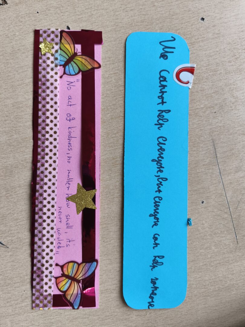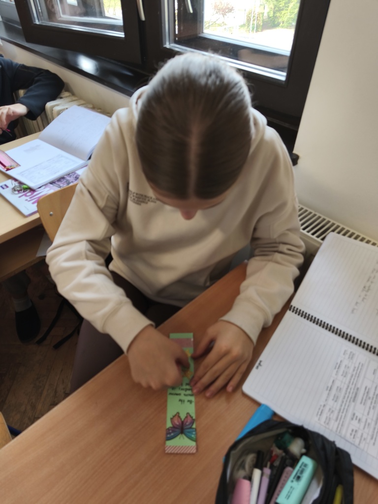 Sa sedmašima je naglasak bio na snazi lijepih riječi, podrške i međusobnog uvažavanja, posebno u izazovnom razdoblju odrastanja. Učenici su zatim pretraživali citate o ljubaznosti na engleskom jeziku te birali one koji ih najviše inspiriraju. Odabrane poruke i citate ispisivali su na straničnike koje su likovno ukrašavali, stvarajući osobne podsjetnike na važnost empatije, dobrote i pažnje prema drugima.