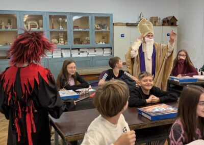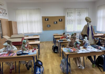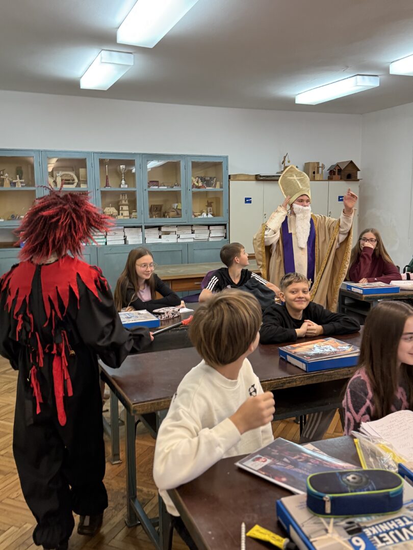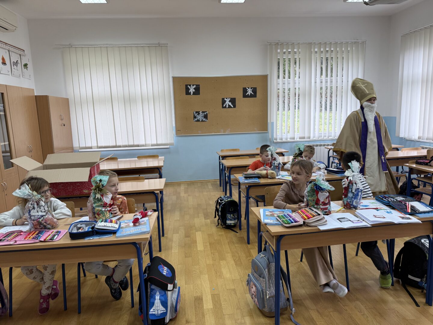 Dana 5. prosinca 2025. učenike naše škole posjetio je najomiljeniji prosinački svetac, sveti Nikola. Uvijek dobro raspoložen i spreman za šalu najviše je razveselio naše najmlađe, učenike nižih razreda. Sa sobom je doveo i Krampusa kao podsjetnik djeci da tijekom cijele godine moraju biti dobri i marljivi. Čak se i Krampus smekšao i poručio djeci da moraju skupljati dobre ocjene, a oni su ga pozorno slušali. Iako je strašno izgledao, u matičnoj je školi u Krapini kao i u područnim školama u Lepajcima i Donjoj Šemnici marljivo dijelio slatkiše, a ne šibe. Svi su toga dana bili veseli, nasmijani i dobro raspoloženi, a dragi gosti obećali su doći i sljedeće godine! Radujemo se ponovnom dolasku!