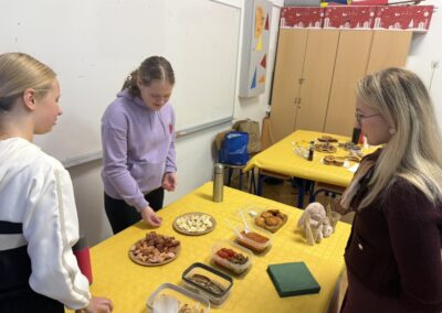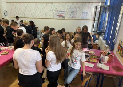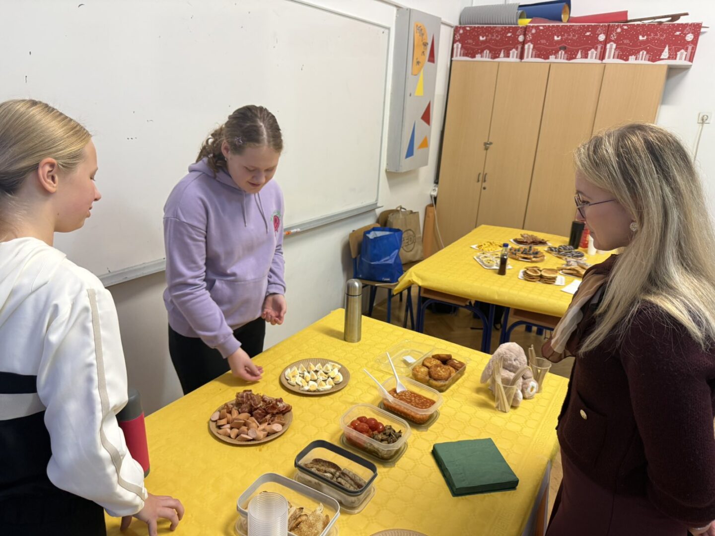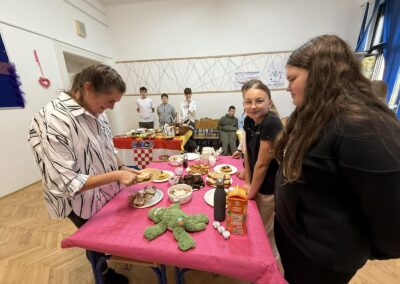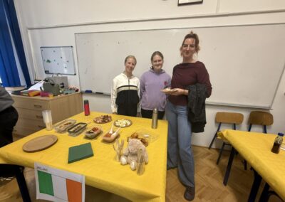 Uz mnogo truda i mašte, svaki je stol postao mala ambasada svoje zemlje. Posjetitelji, učitelji i učenici drugih razreda, s veseljem su kušali ponuđene delicije.