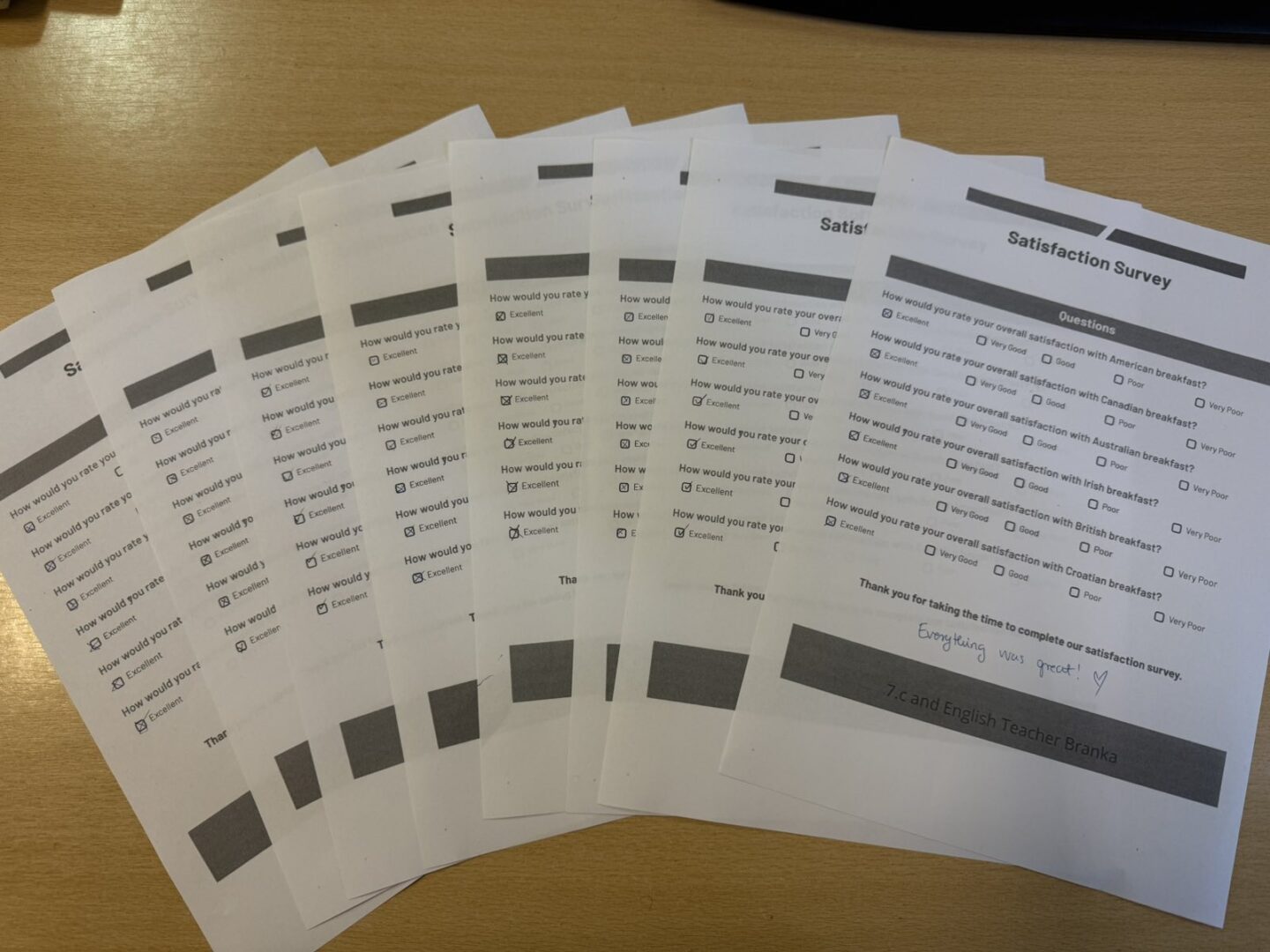 Nakon kušanja, učitelji su ispunili anketu o dojmovima i pohvalili naše sedmaše za kreativnost, trud i izvrsnu prezentaciju.
