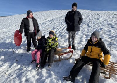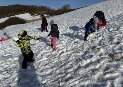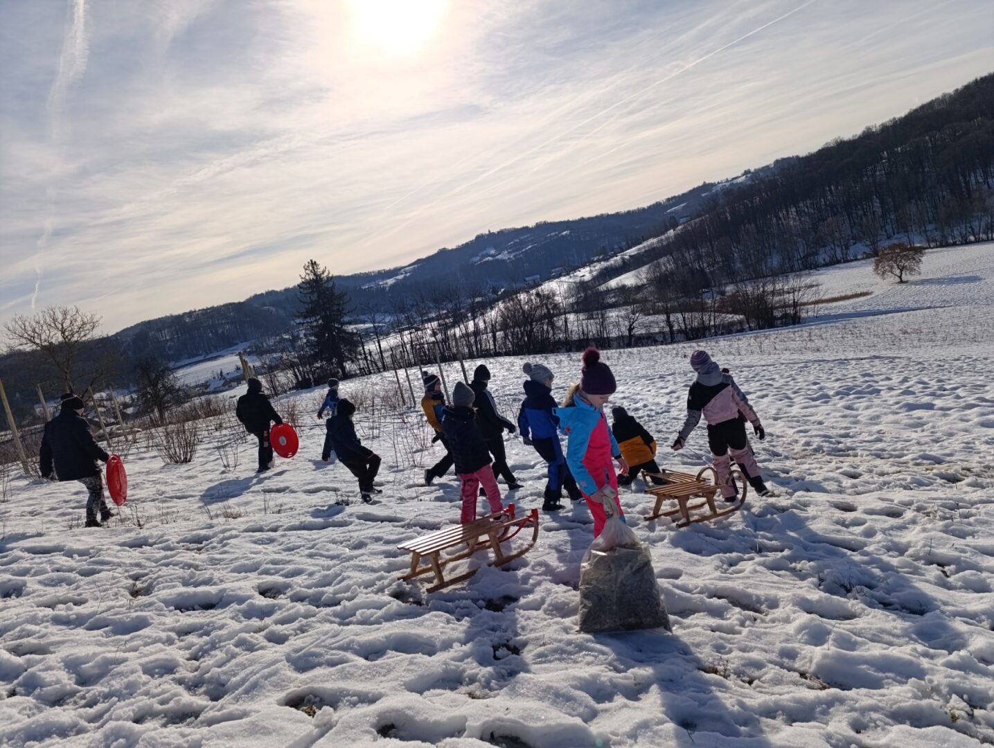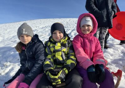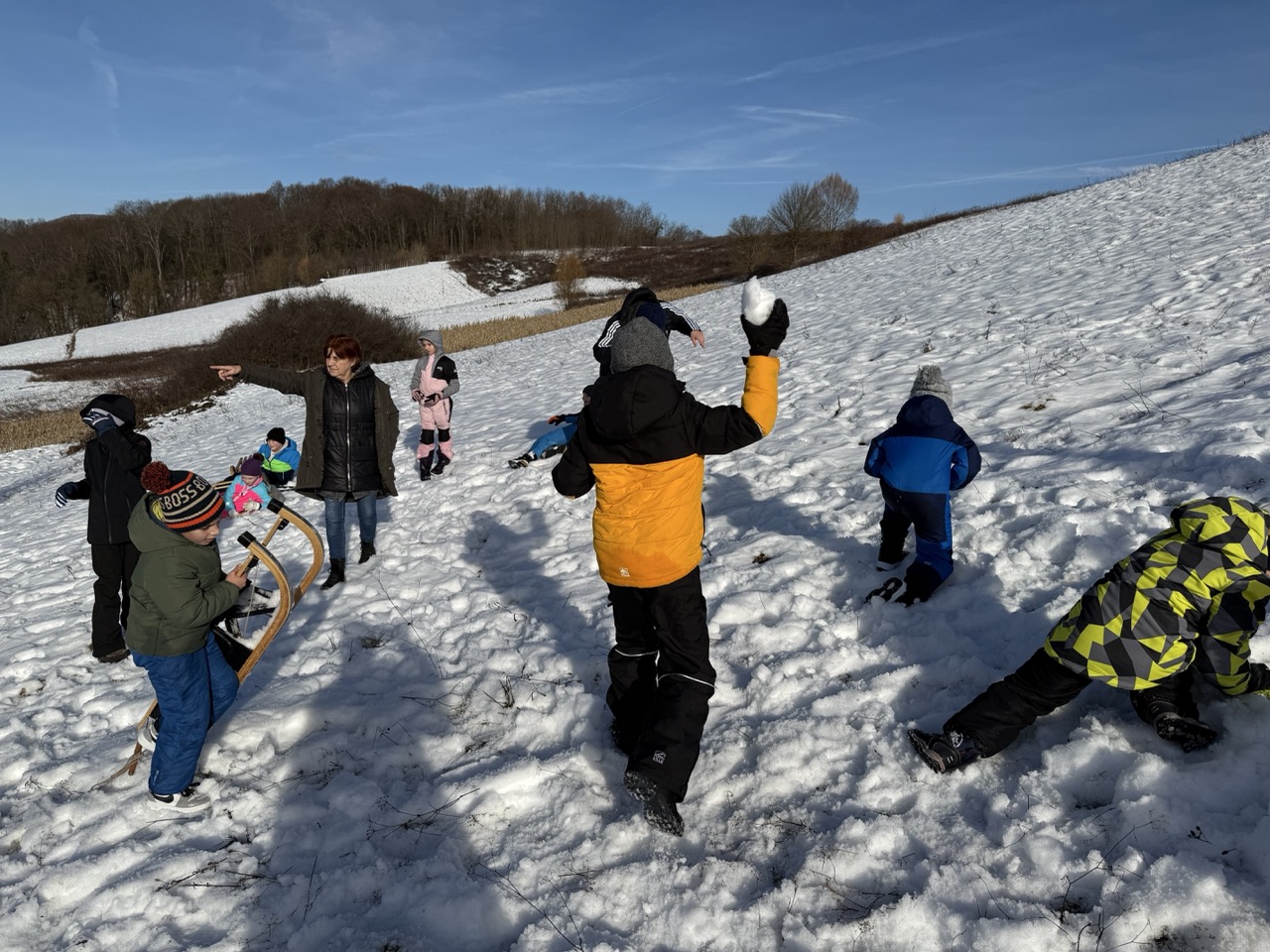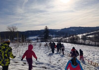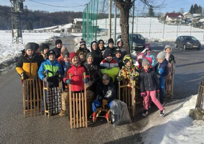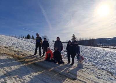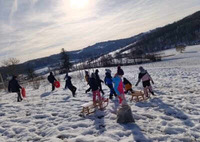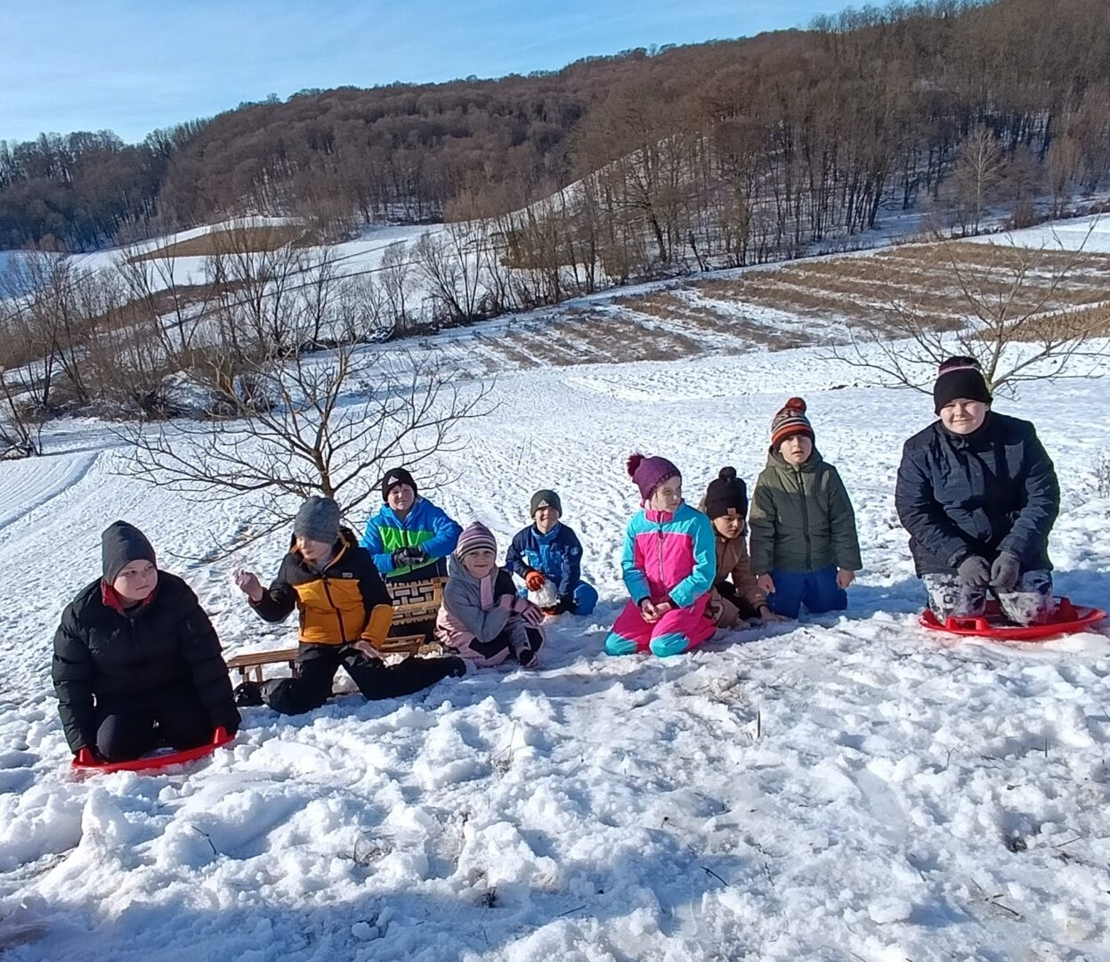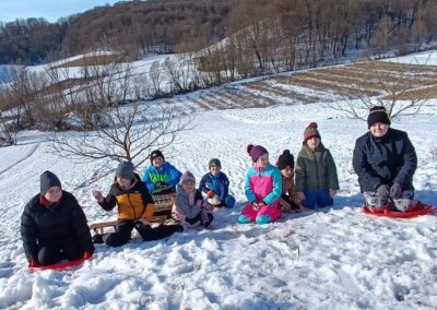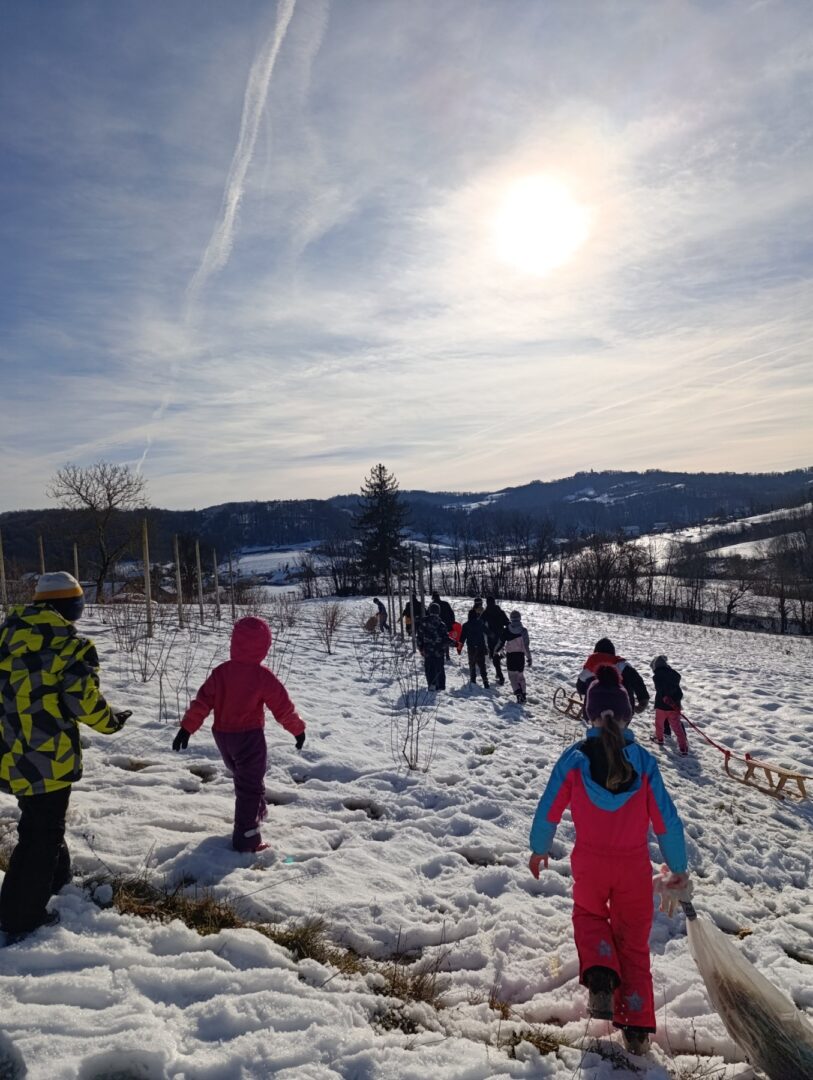 Prošetali su do obližnjeg brijega i zabava je počela. Jurili su na sanjkama, grudali se i napunili pluća svježim zrakom. Smijeh i veselje mogli su se čuti skroz do obližnjih kuća. Vjerujemo da će im ovaj dan još dugo biti u sjećanju.