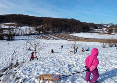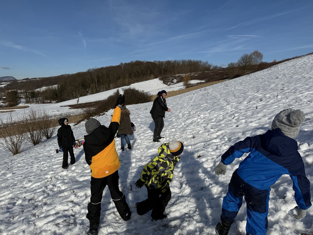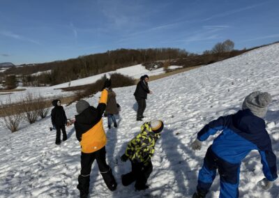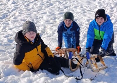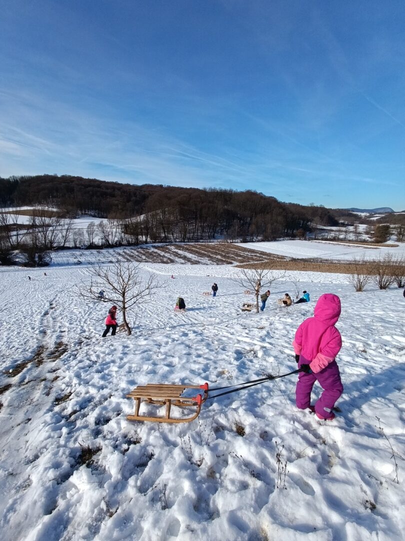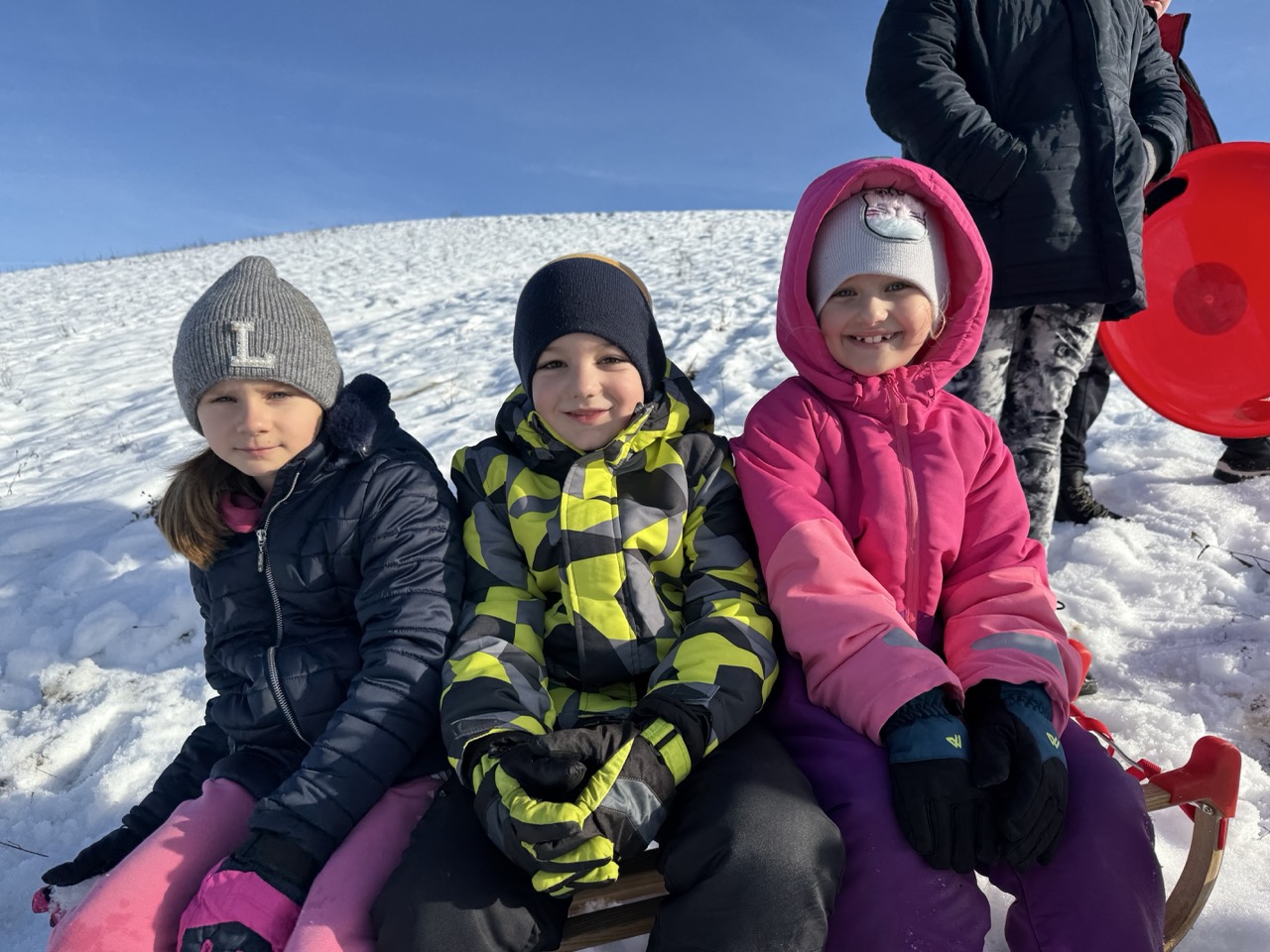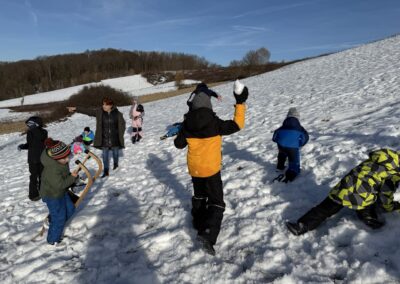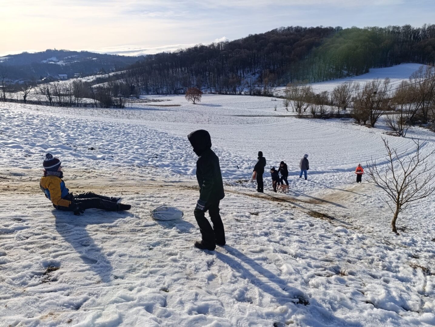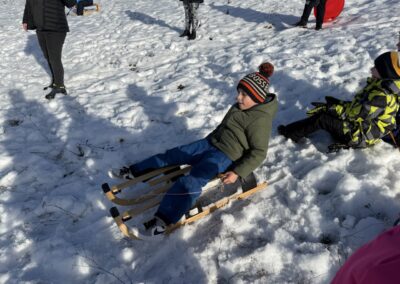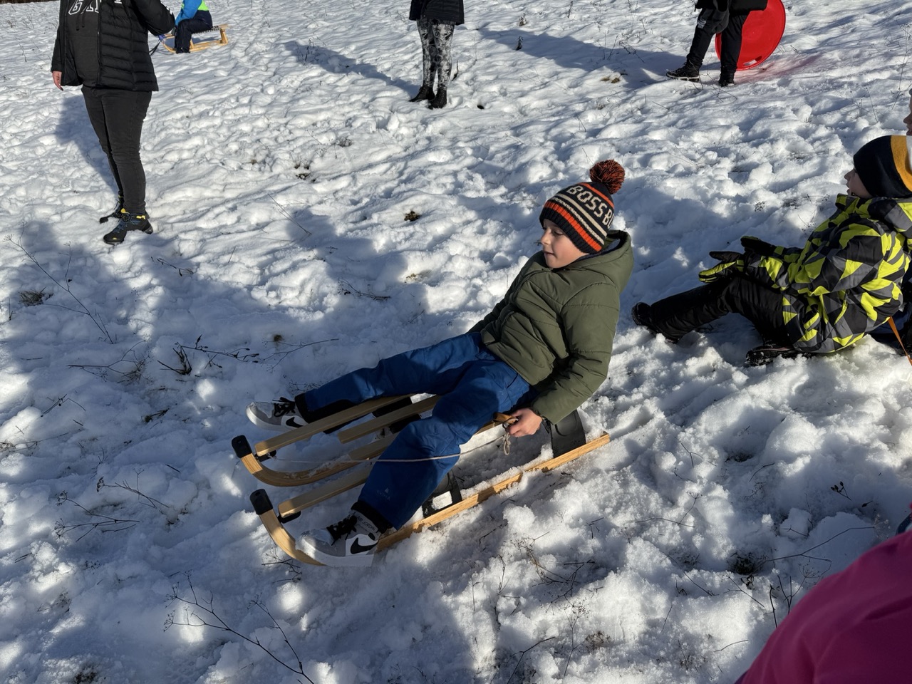 Prošetali su do obližnjeg brijega i zabava je počela. Jurili su na sanjkama, grudali se i napunili pluća svježim zrakom. Smijeh i veselje mogli su se čuti skroz do obližnjih kuća. Vjerujemo da će im ovaj dan još dugo biti u sjećanju.